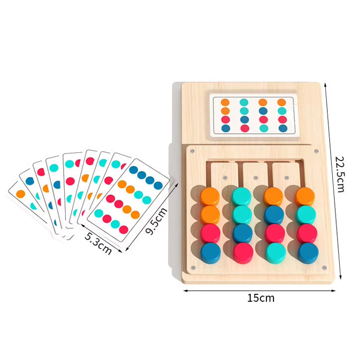 Gør leg til læring med Farvematchen, et farverigt og engagerende aktivitetslegetøj, der hjælper børn med at træne både logisk tænkning og finmotorik. Barnet fører de små farvede brikker fra række til række indtil mønsteret matcher med det kort der er trukket. En simpel, men utrolig tilfredsstillende udfordring, de kan blive ved med at udforske igen og igen.